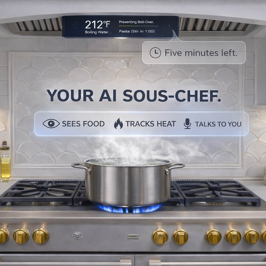an ai device that mounts above your stove and guides you in real time - telling you when to stir, flip, or adjust heat as you cook.